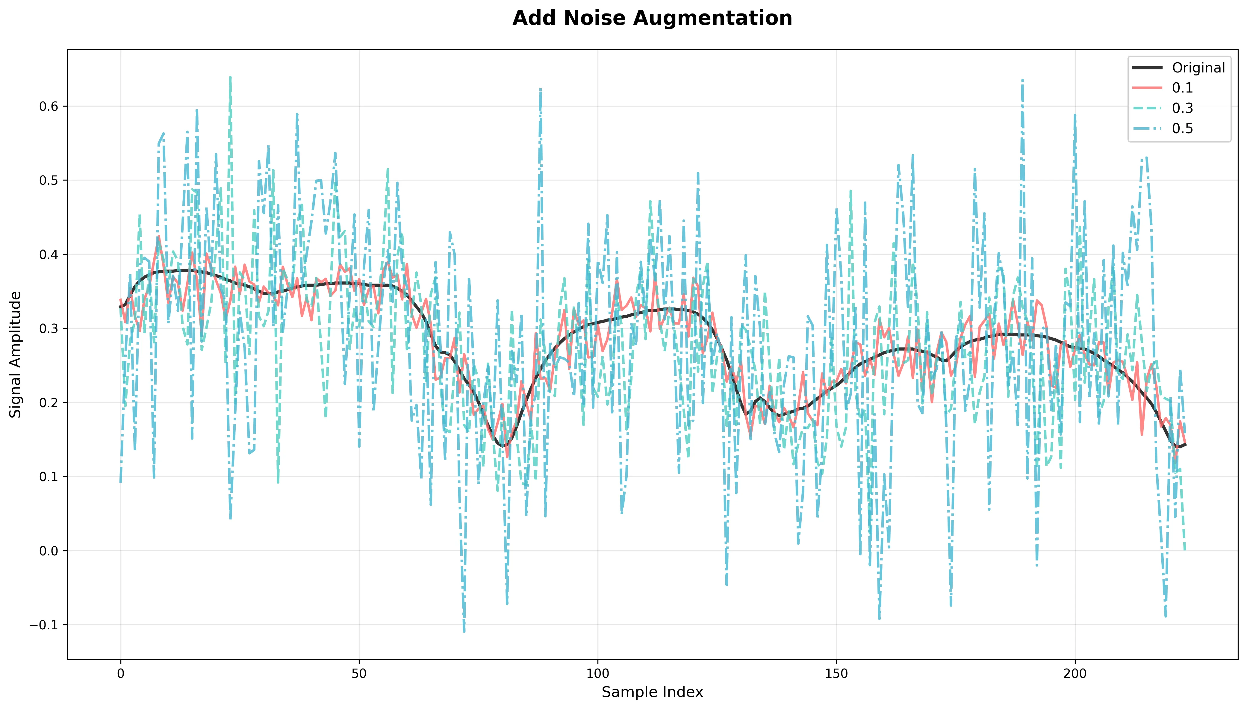 Effect: Simulates sensor/electronic noise, improving model robustness to noisy measurements.