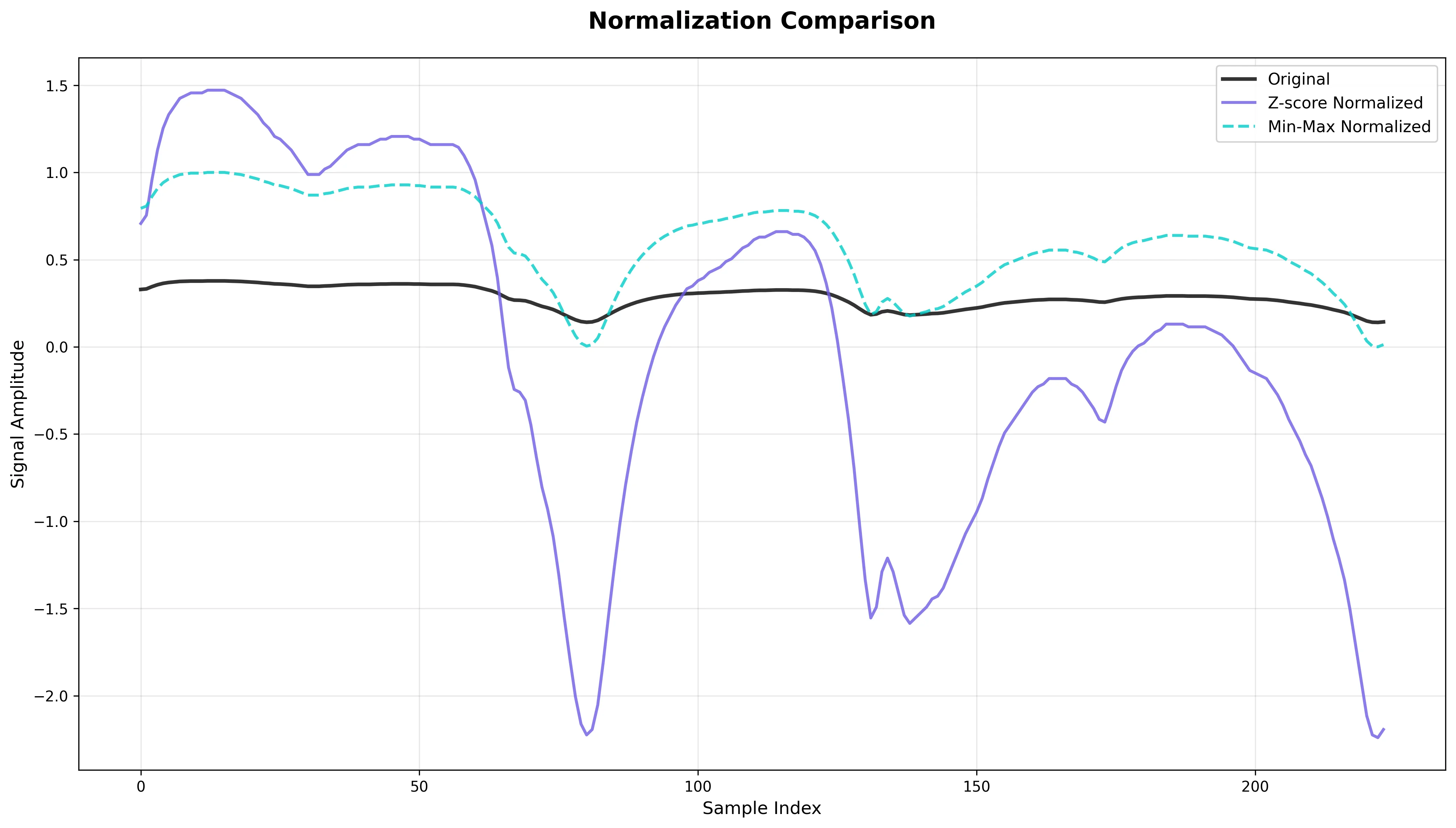 Risk: If the scaling range is too wide, absolute peak magnitudes (often critical for classification) may be distorted.