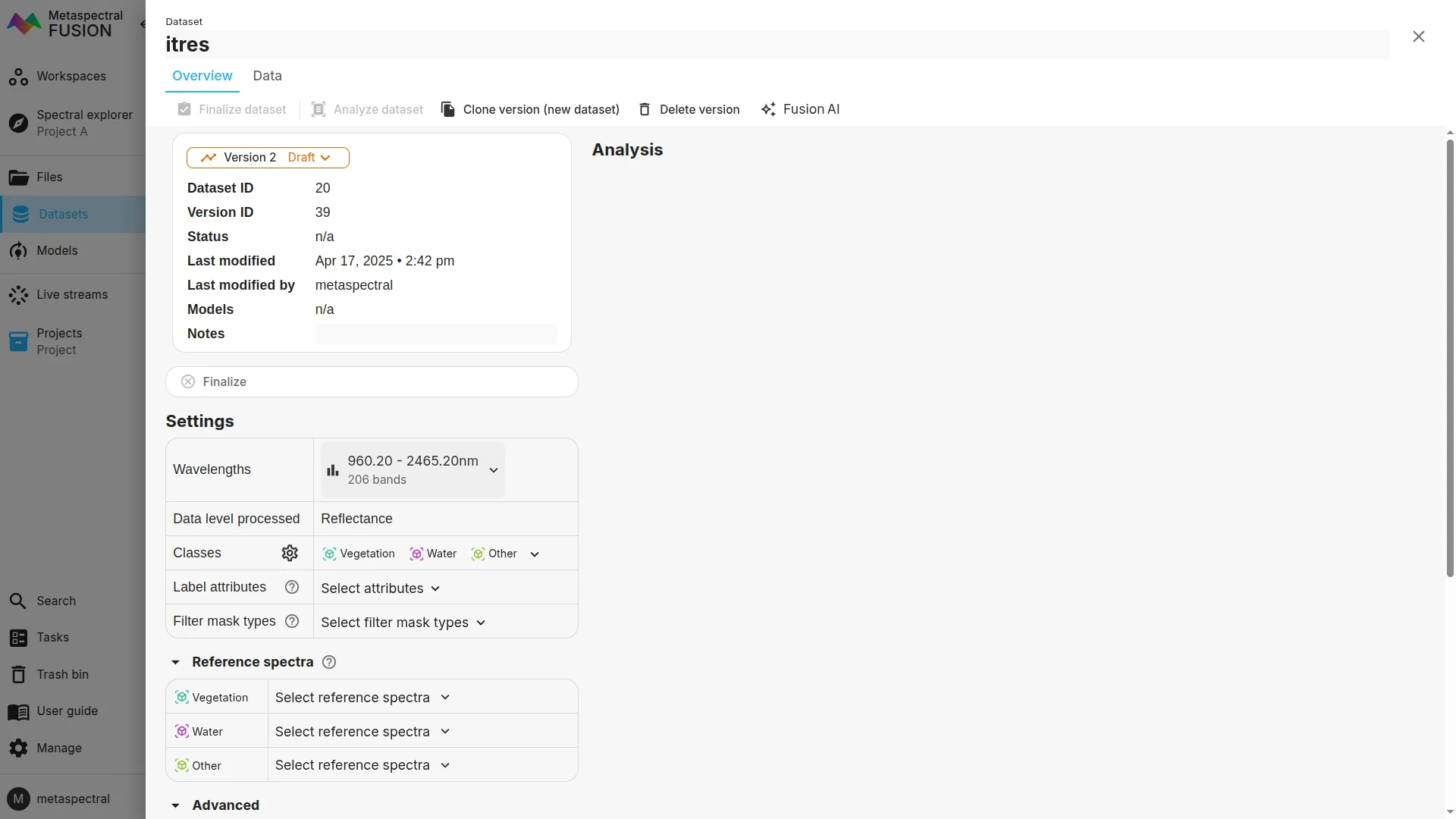 Different hyperspectral images may have different center wavelengths or number of bands. In Clarity, you can create datasets with different center wavelengths as long as there is some overlap.
