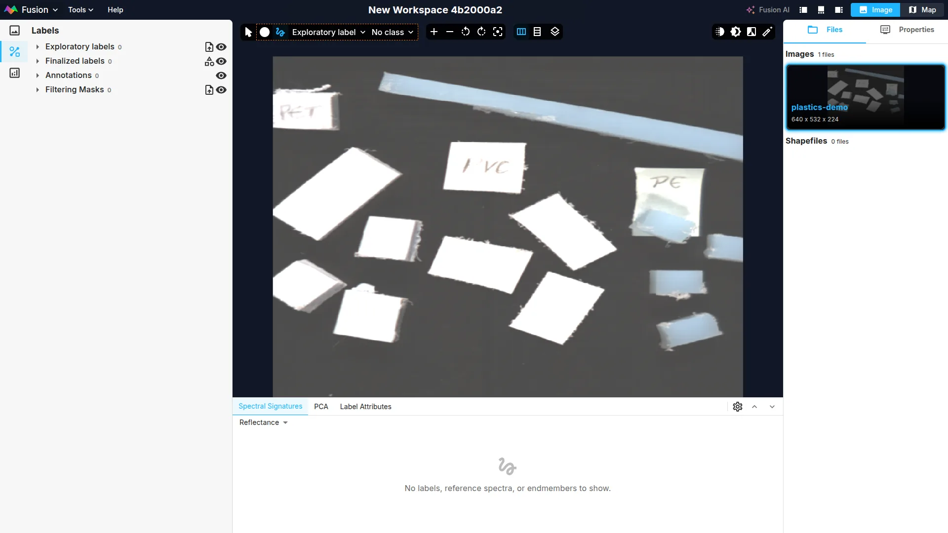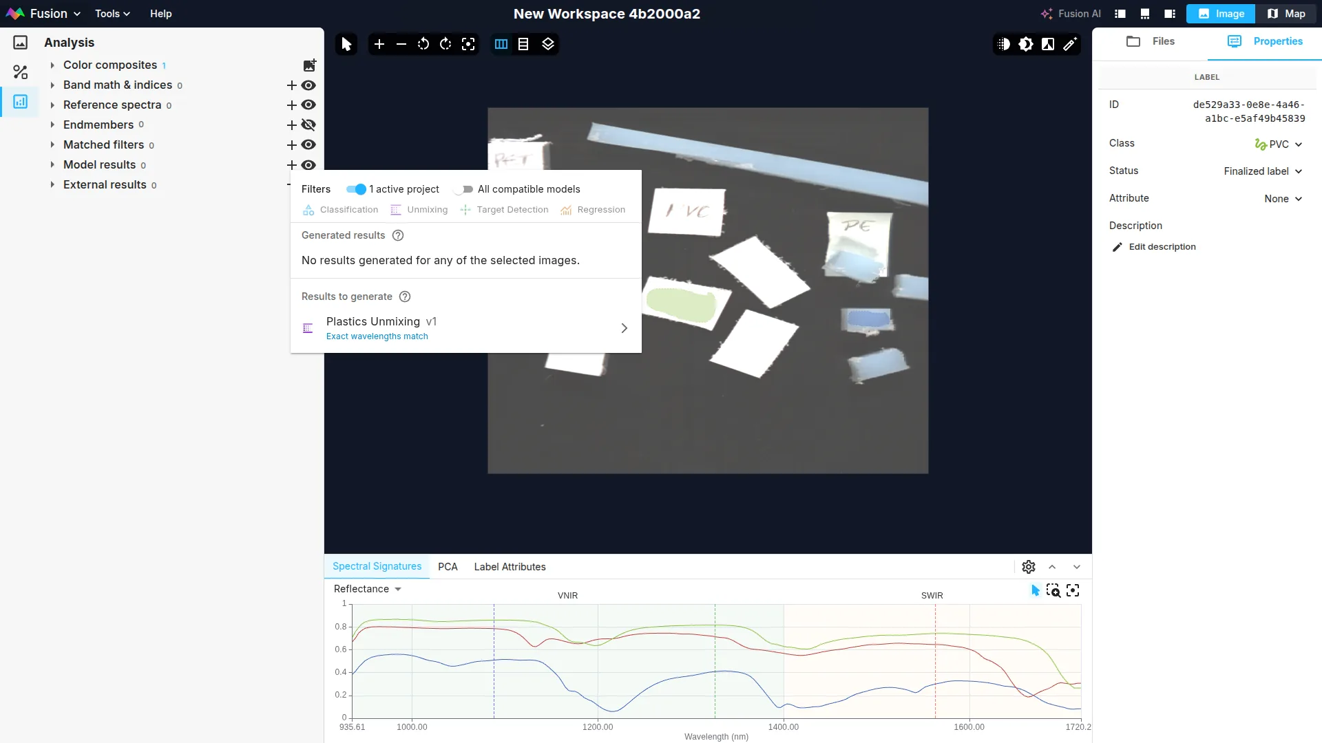 To generate inference, click on the + icon in the Model results section and click on the Plastics Unmixing model.